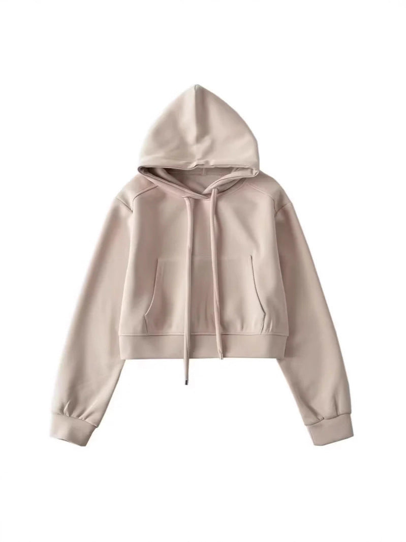 Damen modischer cropped Kapuzenpullover aus sweatshirt Material Fudus