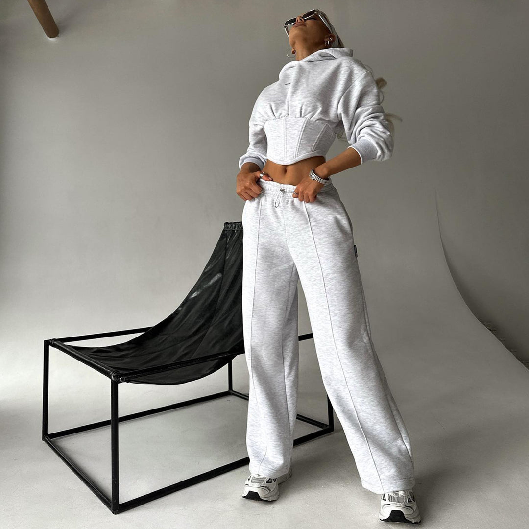 Damen modischer cropped Kapuzenpullover und entspannte Hose Set Fudus
