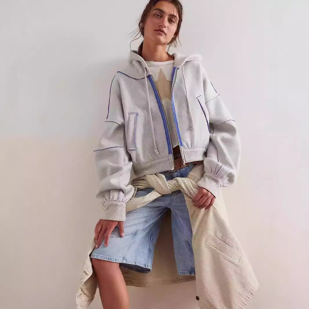 Damen modischer Kapuzenpullover mit Reißverschluss und elastischen Bündchen Fudus