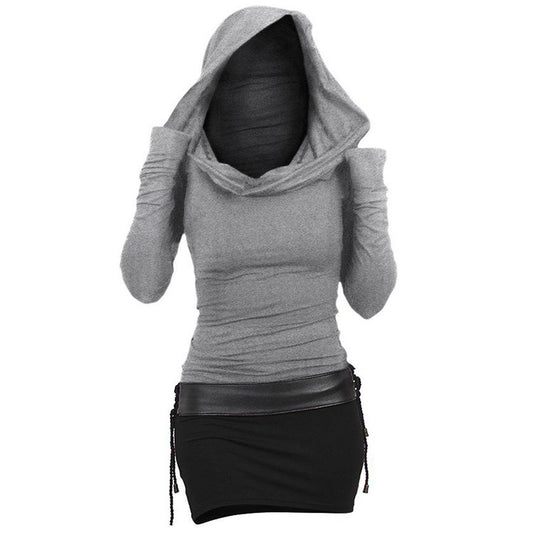 Damen Hoodie-Kleid mit Wickelkragen und figurbetontem Schnitt Fudus