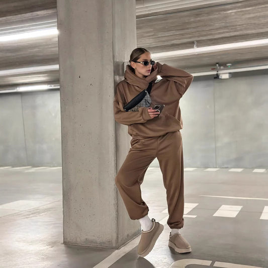 Damen Hoodieset mit künstlerischem Print und bequemen Jogginghose Fudus