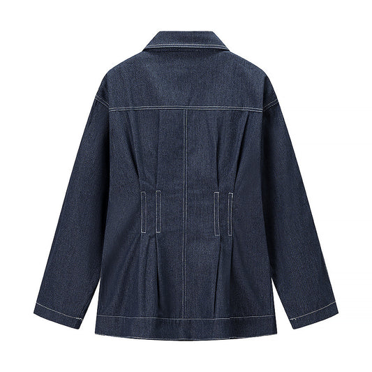 Damen Jeansjacke im Vintage-Stil mit zwei Brusttaschen und knöpfbarem Kragen Fudus