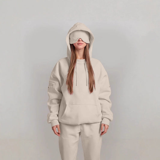 Damen Kapuzenpullover mit integriertem Schlafmasken-Design und weicher Innenseite Fudus