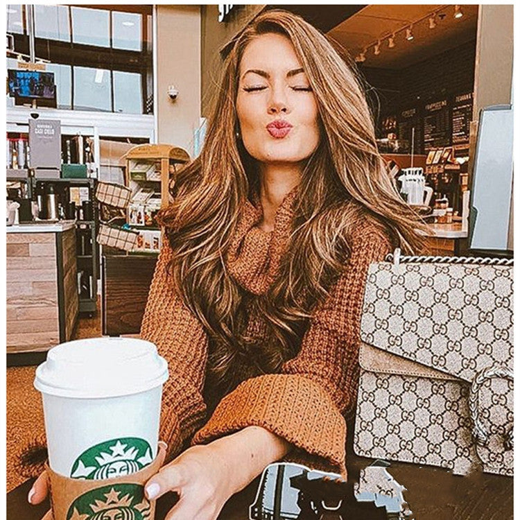 Damen Grobstrick Pullover mit hohem Kragen und weitem Schnitt Fudus