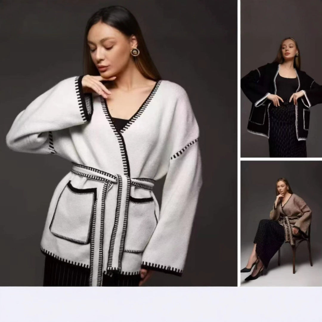 Damen Grobstrick Mantel mit praktischem Gürtel und Taschen Fudus
