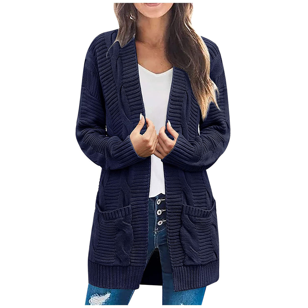 Damen Grobstrickcardigan mit großen Taschen und offener Front Fudus