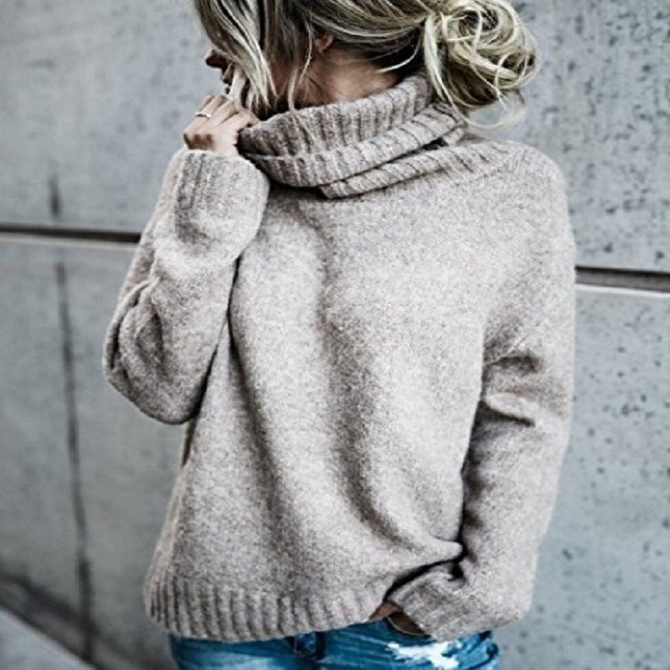 Damen Grobstrickpullover mit hohem Kragen und lässigem Schnitt Fudus