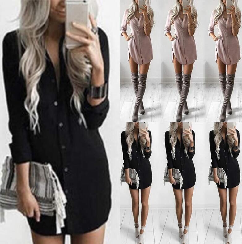 Damen Hemdblusenkleid mit asymmetrischem Saum und Taillengürtel Fudus