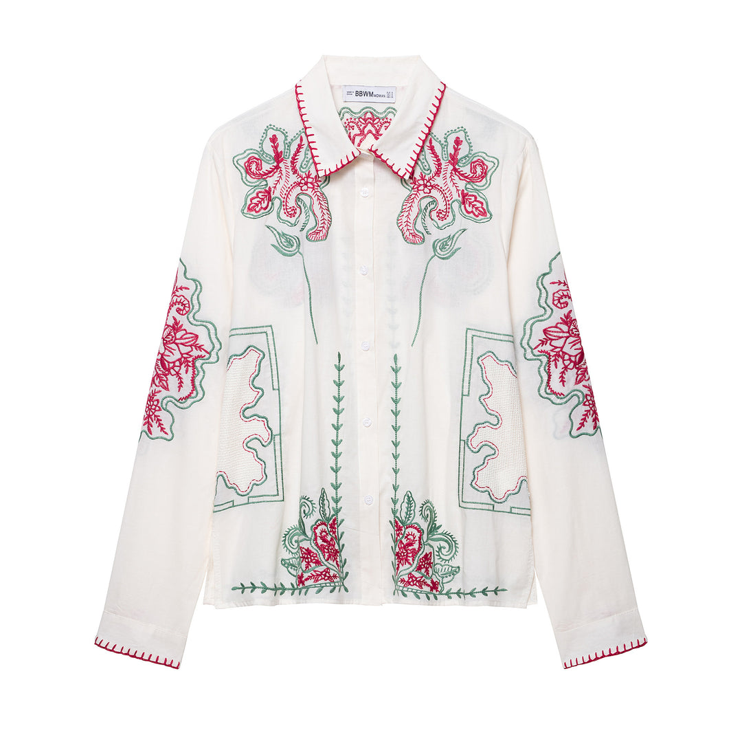 Damen Hemdbluse mit kunstvollen Stickereien Fudus