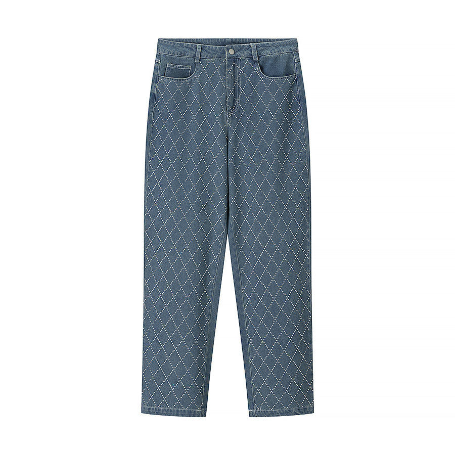 Damen hochtaillierte Jeanshose im eleganten Karomuster Fudus