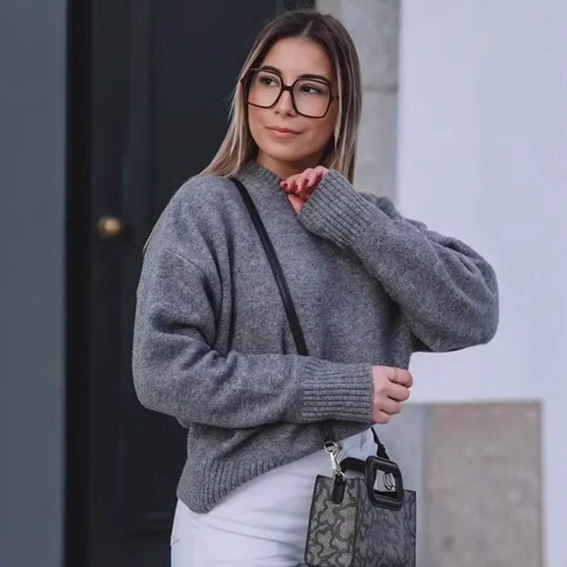 Damen Hochwertiger, kuscheliger Strickpullover mit voluminösen Ärmeln Fudus