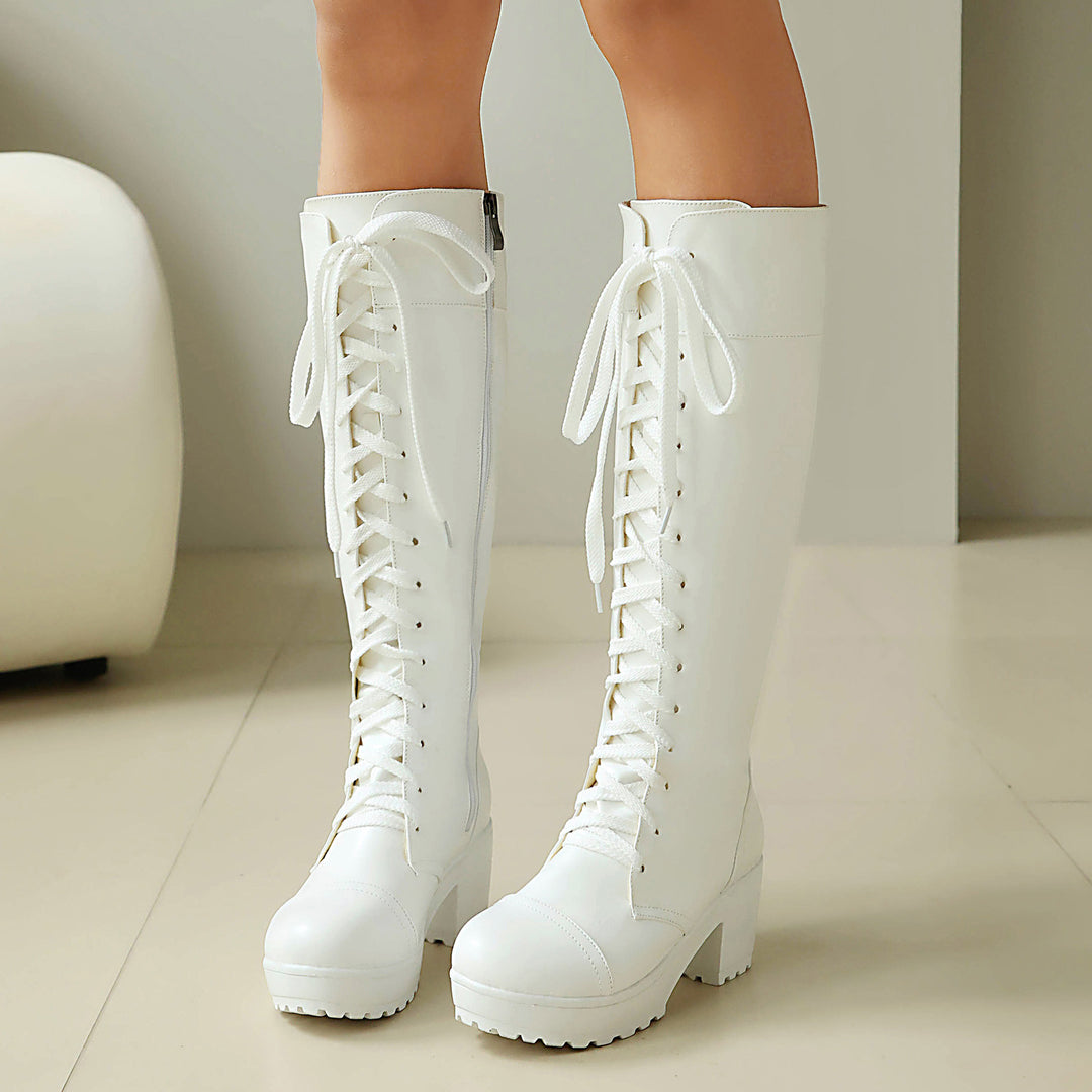 Damen hohe Schnürstiefel mit robustem Blockabsatz Fudus