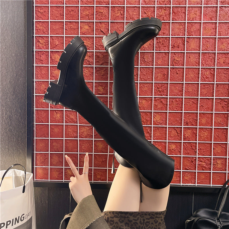 Damen hohe Overknee-Stiefel mit elegantem Plateau Fudus