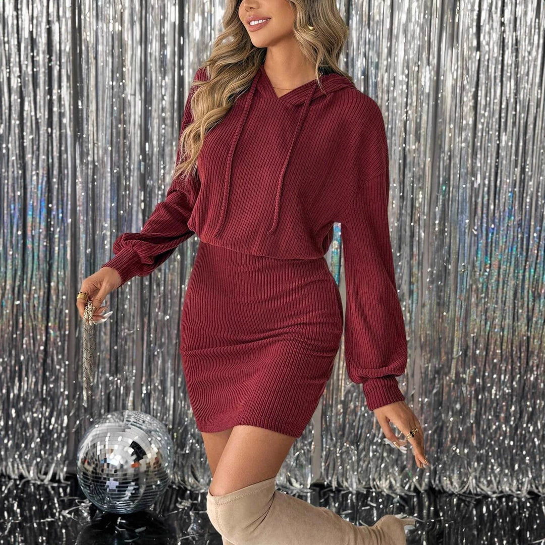 Damen Hoodie Kleid mit Rippstruktur und weitem Schnitt Fudus