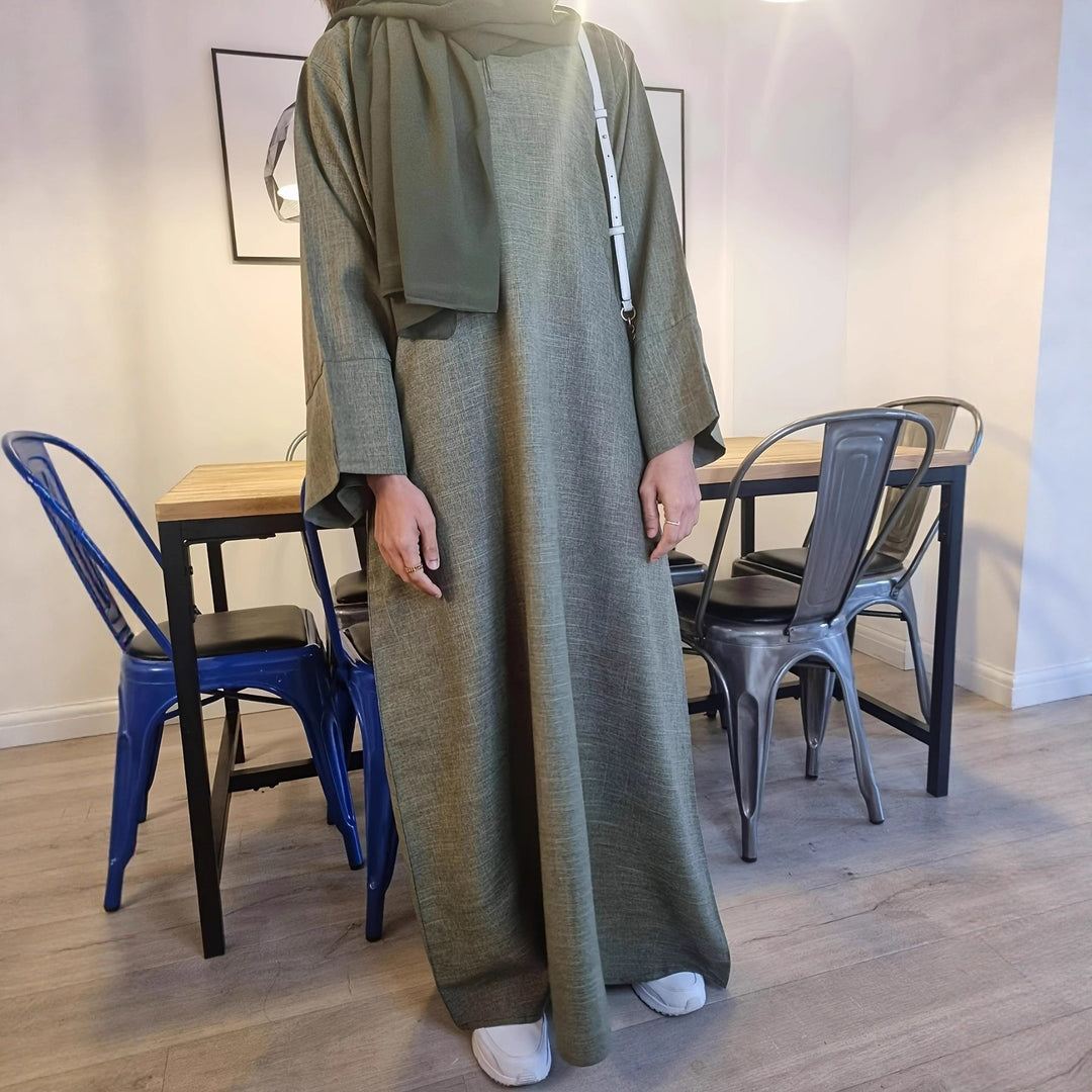 Damen Kaftan-Kleid mit eleganten Seitennaht- und Arm-Details Fudus