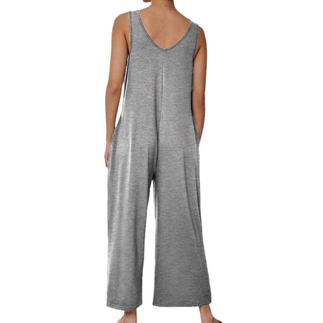 Damen Jumpsuit Weit Geschnitten V Ausschnitt Drapierungen Elegant