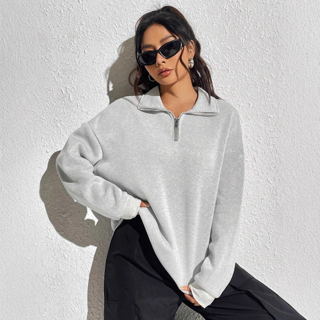 Damen Kapuzensweatshirt mit halbem Reißverschluss und lässigem Schnitt Fudus
