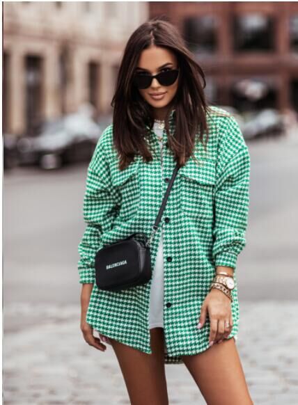 Damen Karierte Overshirt-Jacke mit kreativem Muster Fudus