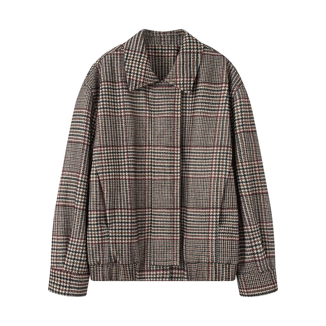 Damen Karierte Übersize-Jacke mit hohen Kragen und elastischem Bund Fudus