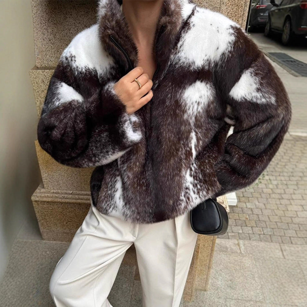 Damen Kunstfelljacke mit hochschließendem Kragen und luxuriösem Design Fudus