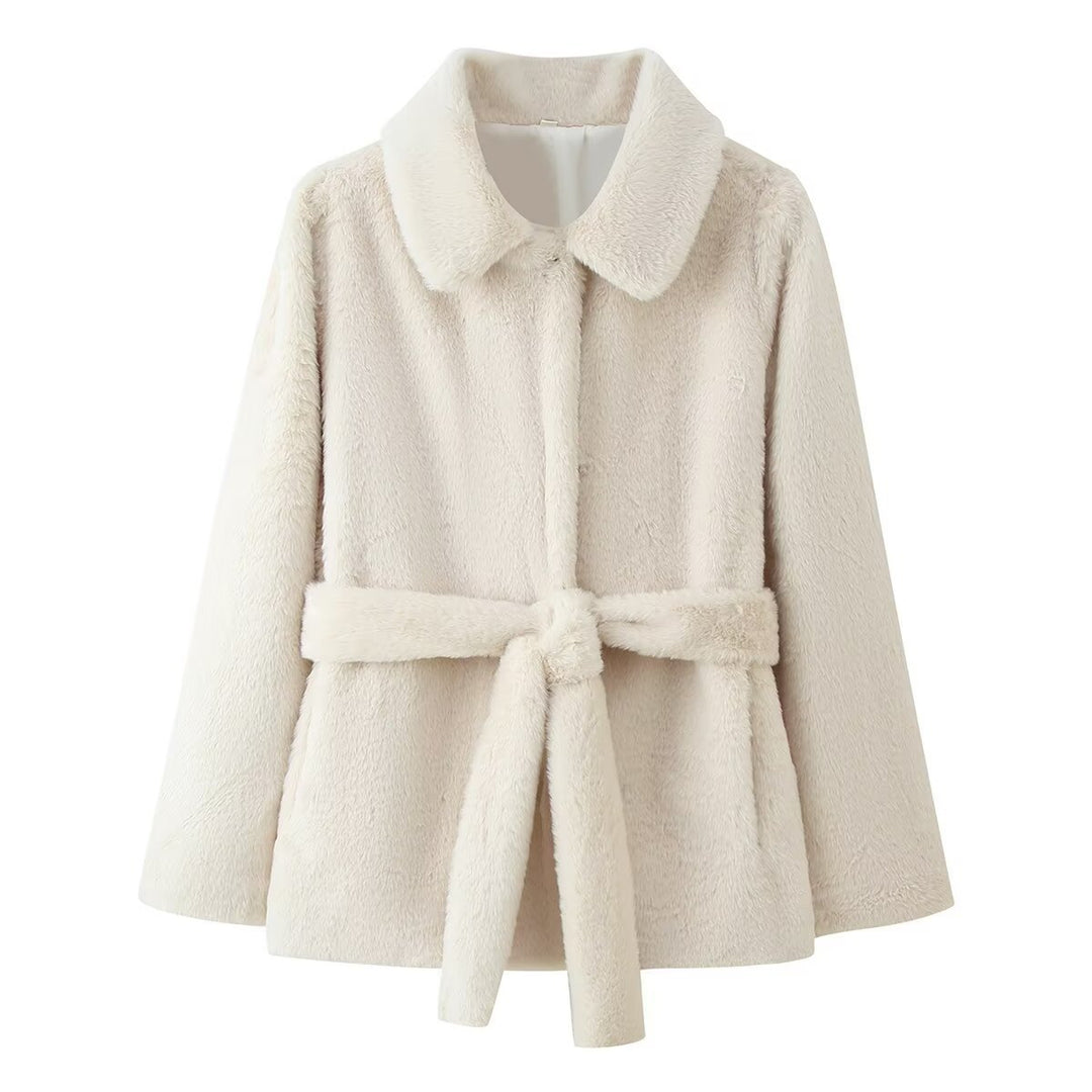 Damen Kunstfelljacke mit Gürtel und weichem Kragen Fudus