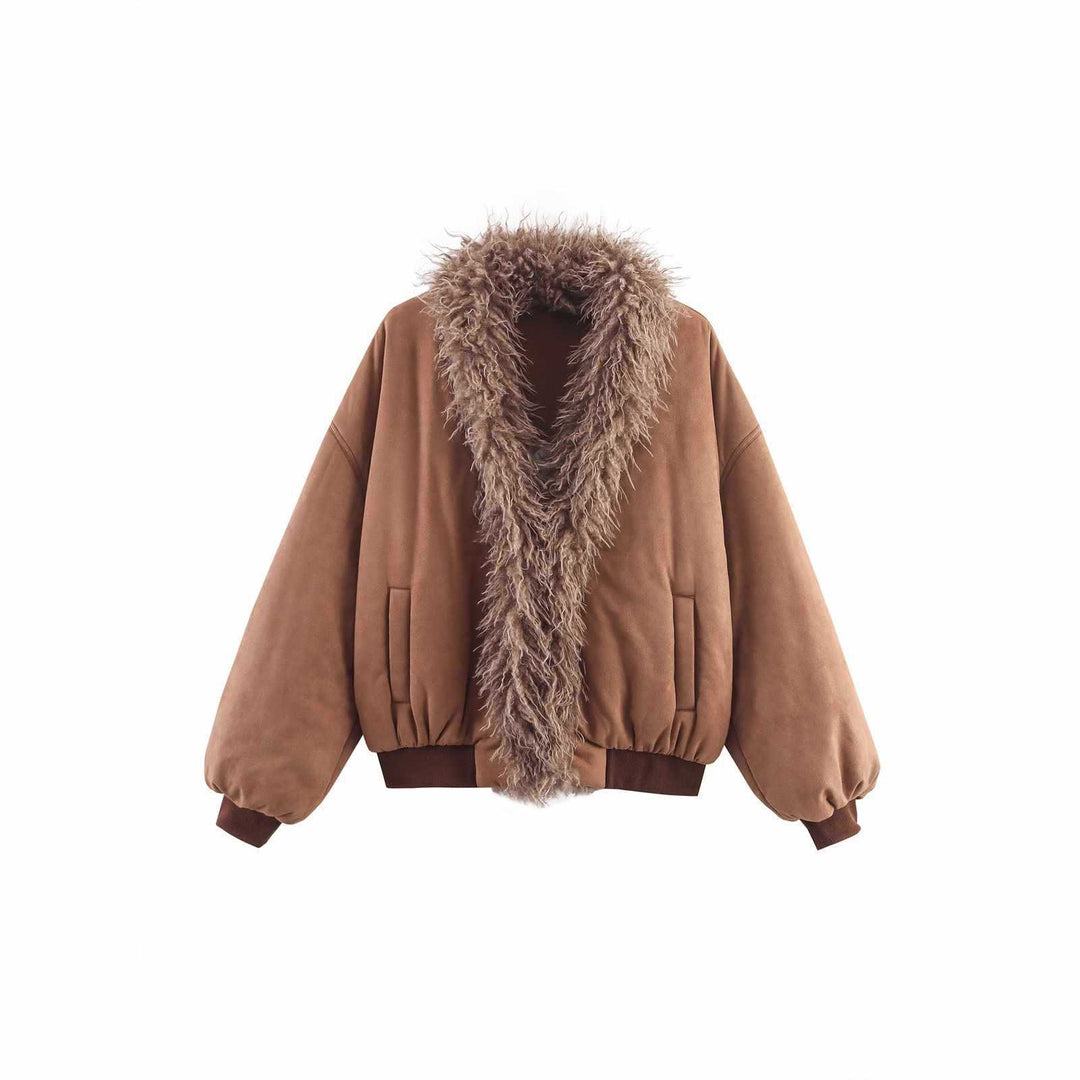 Damen Kunstfelljacke mit Pelzkragen und praktischen Taschen Fudus