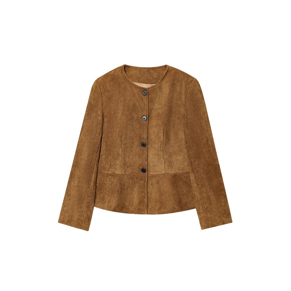 Damen Kunstlederjacke mit elegantem Stehkragen und praktischen Knopfdetails Fudus