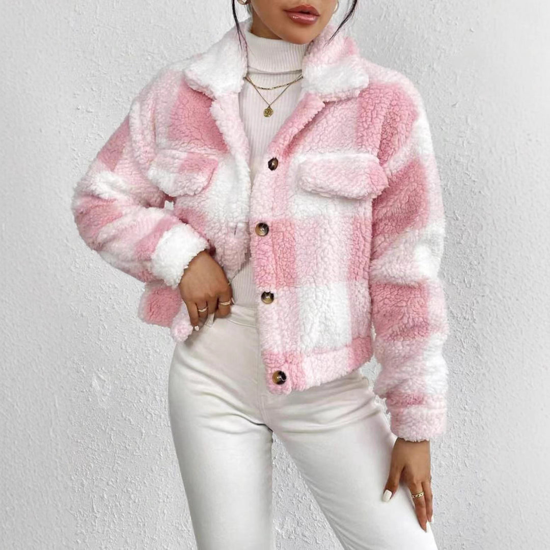 Damen Kurze Fleecejacke im Karomuster Fudus