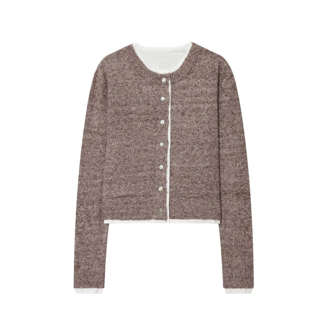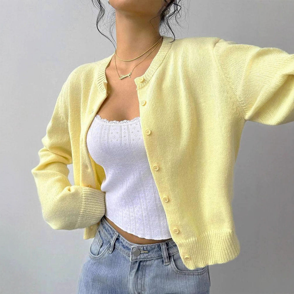 Damen Kurze Strickjacke mit Rundhalsausschnitt und Knopfverschluss Fudus