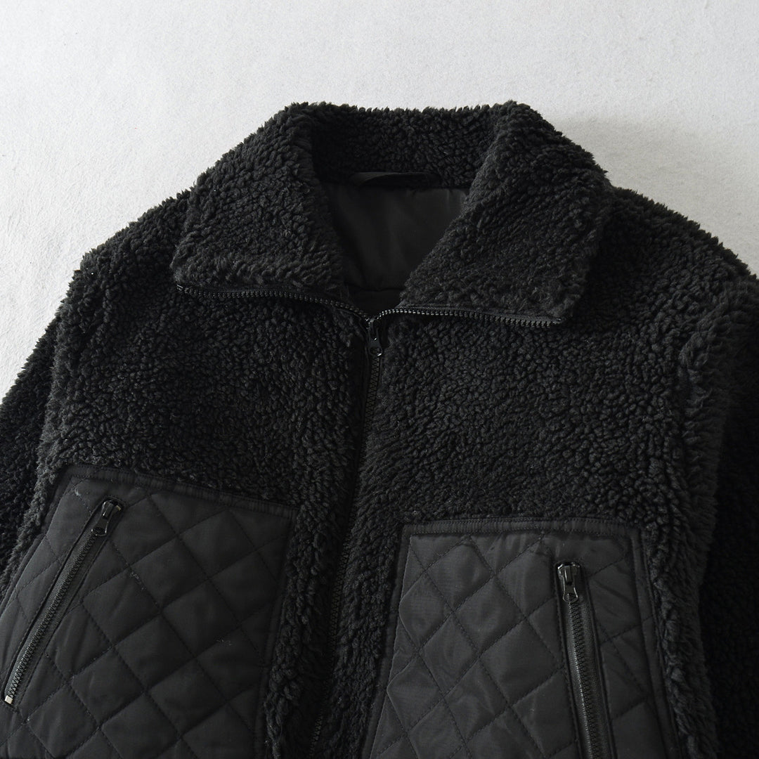 Damen Kurze Teddyfelljacke mit Lederakzenten Fudus
