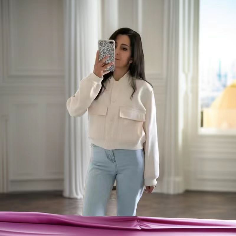 Damen Kurze Utility-Jacke mit voluminösen Ärmeln und praktischen Taschen Fudus