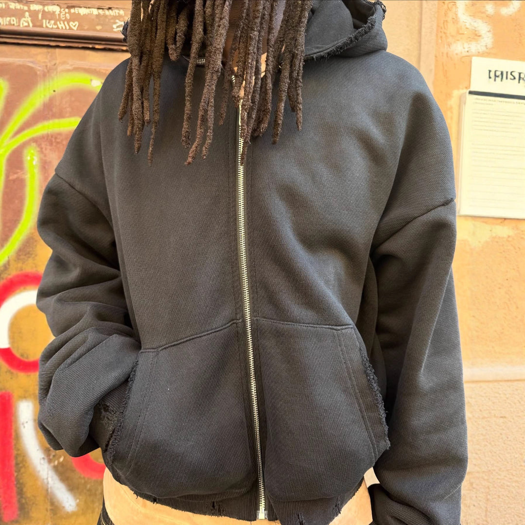 Damen Kurzjacke mit Reißverschluss und asymmetrischem Kapuzen-Design Fudus