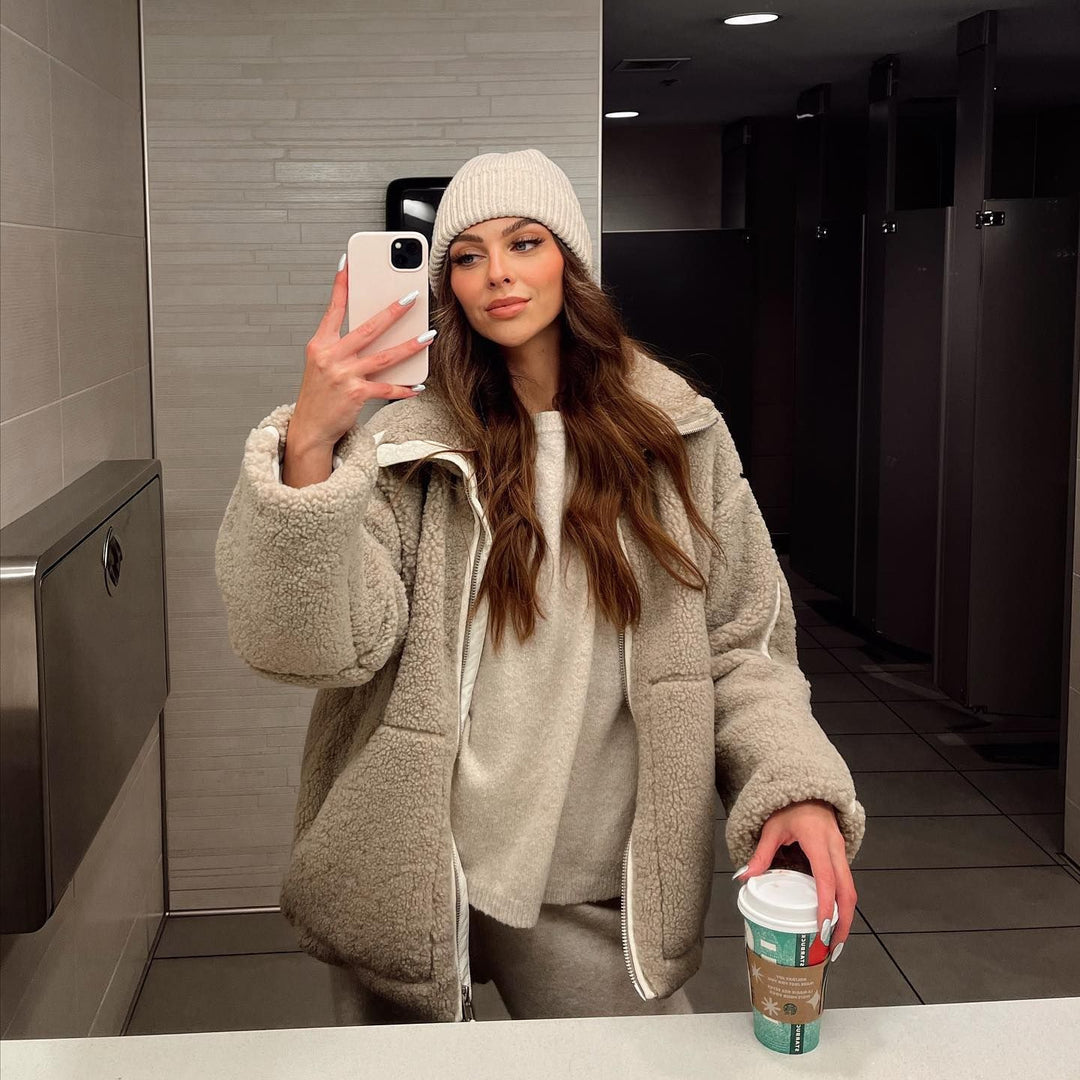 Damen kuschelige Fleecejacke mit großen Taschen Fudus