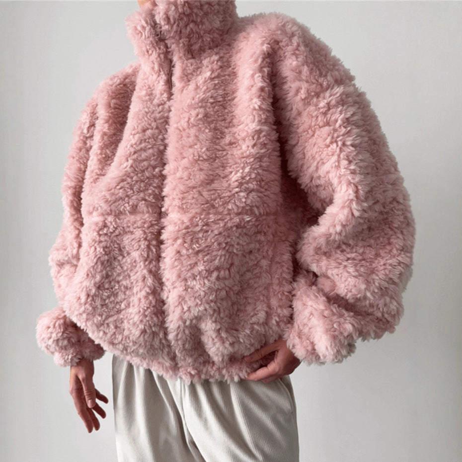 Damen kuschelige Fleecejacke mit hochgeschlossenem Kragen Fudus