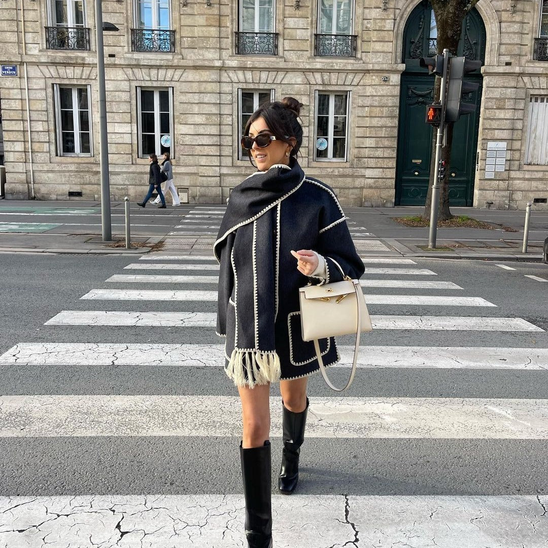 Damen Kuschelige Fleecejacke mit eleganten Fransen und Knopfdetail Fudus