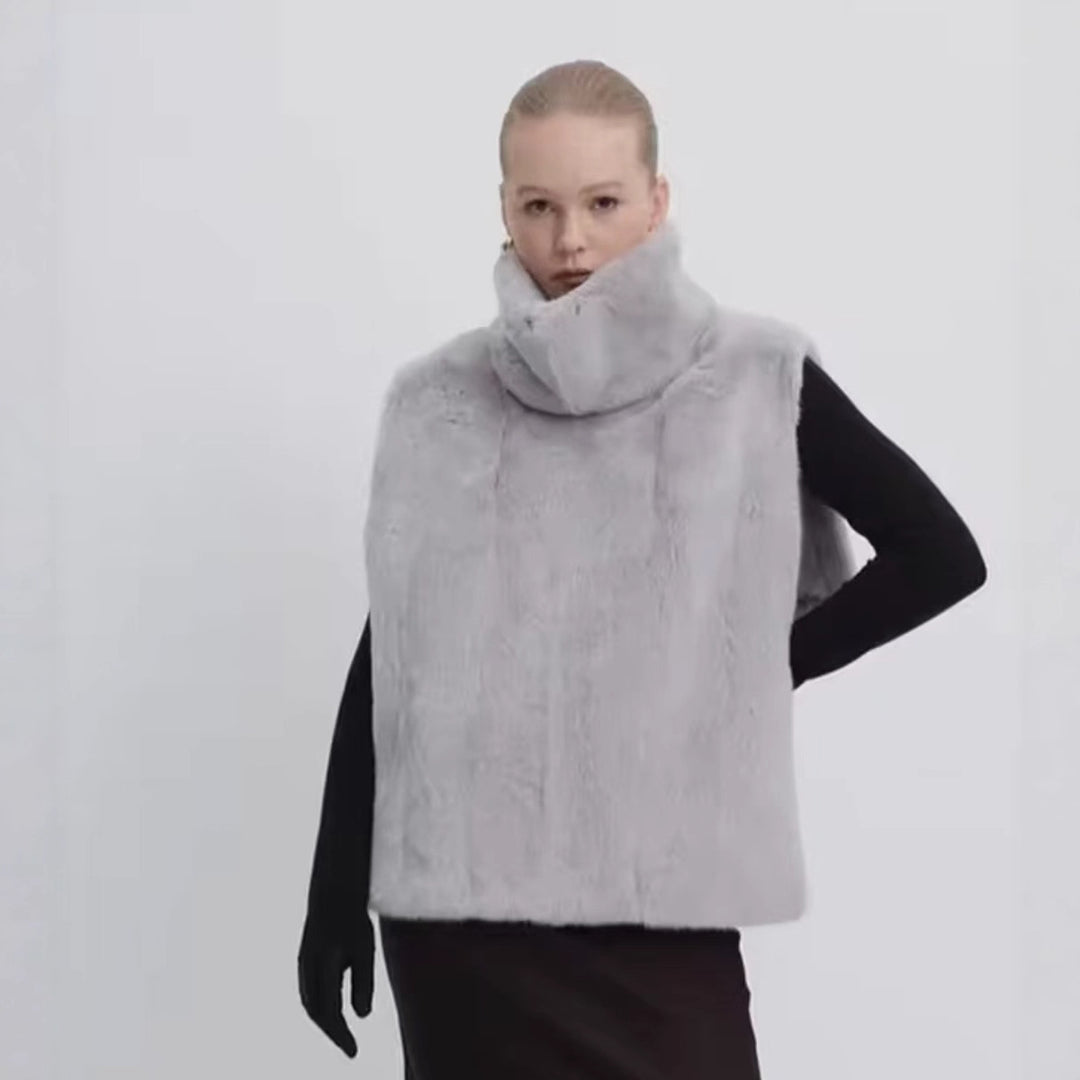 Damen kuschelige Kunstfellweste mit hohem Kragen Fudus