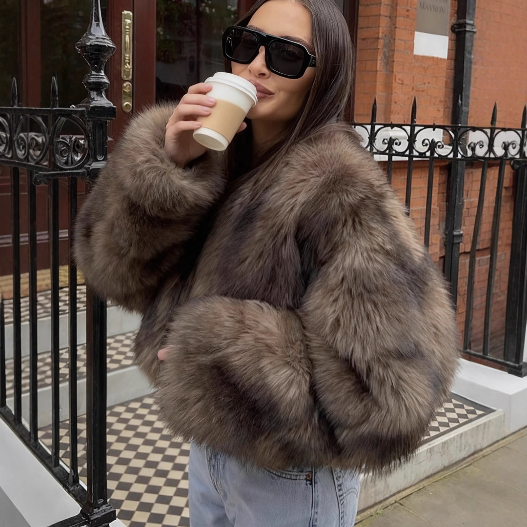 Damen Kuschelige Kunstfelljacke mit weiten Ärmeln Fudus
