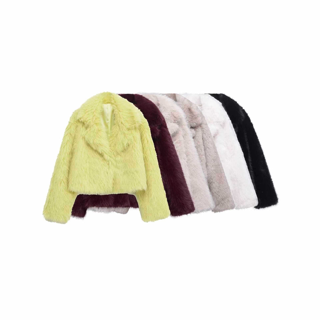 Damen kuschelige Kunstfelljacke mit elegantem Kragen Fudus