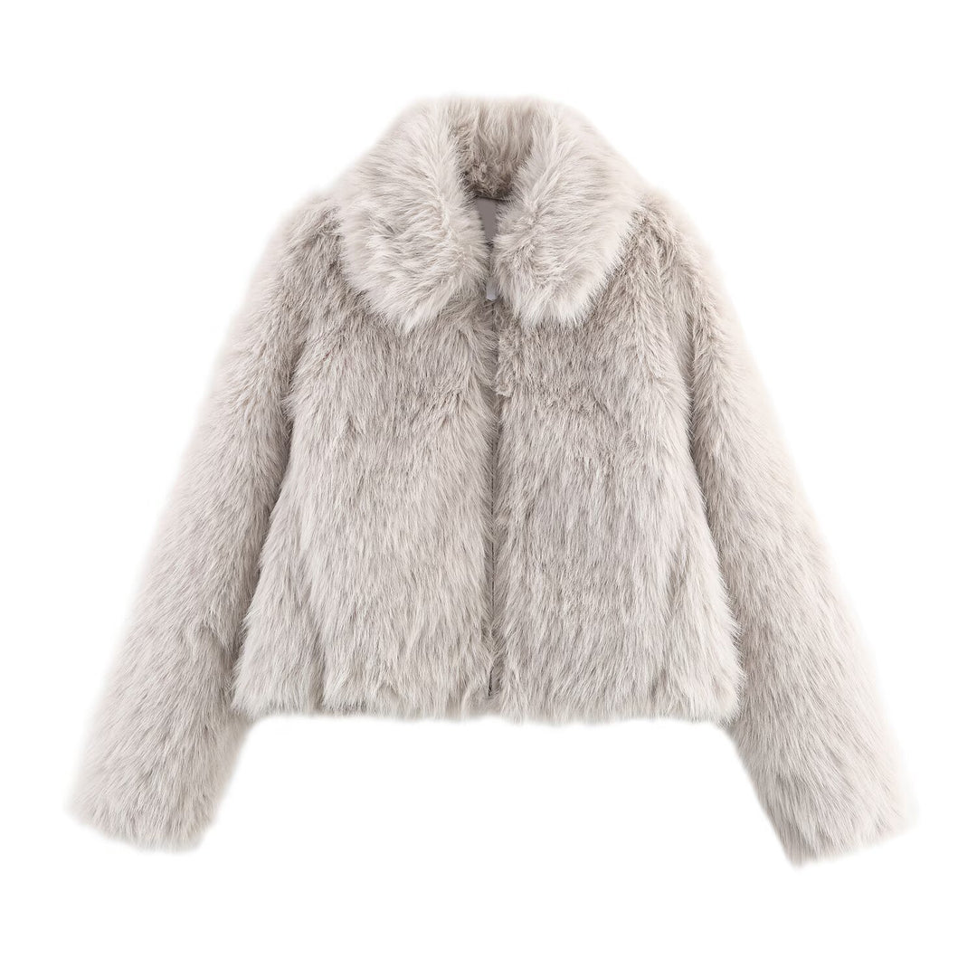 Damen Kuschelige Kunstfelljacke mit breitem Kragen Fudus