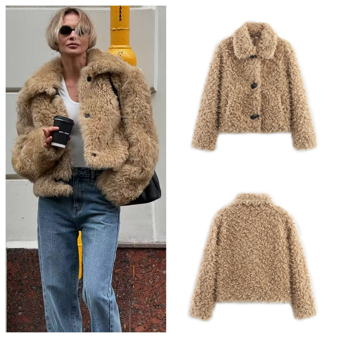 Damen kuschelige Teddyfelljacke mit kurzem Schnitt und schmeichelndem Design Fudus