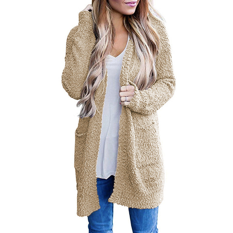 Damen Kuscheliger Strickmantel mit offenem Schnitt und praktischen Taschen Fudus