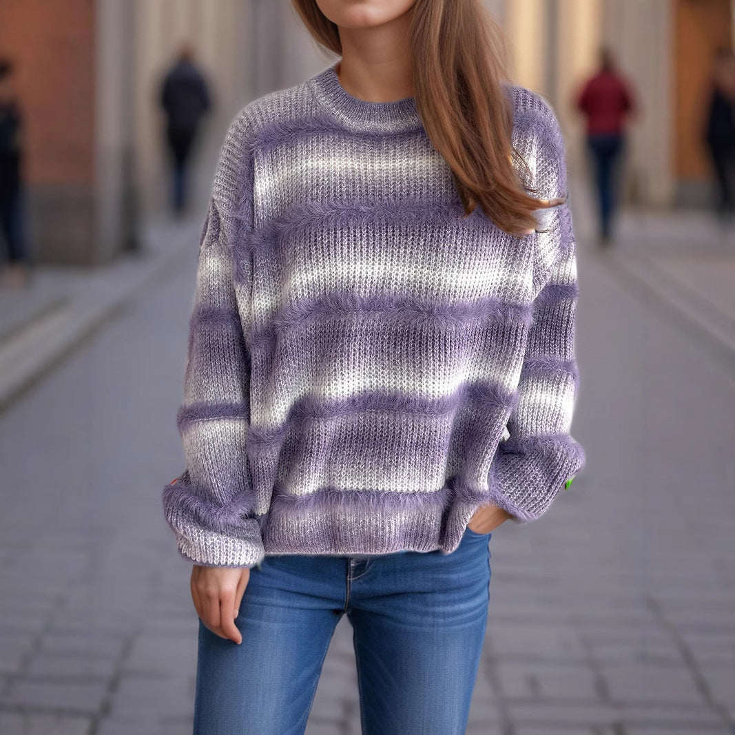 Damen kuscheliger Strickpullover mit fransigen Akzenten und attraktivem Farbverlauf Fudus