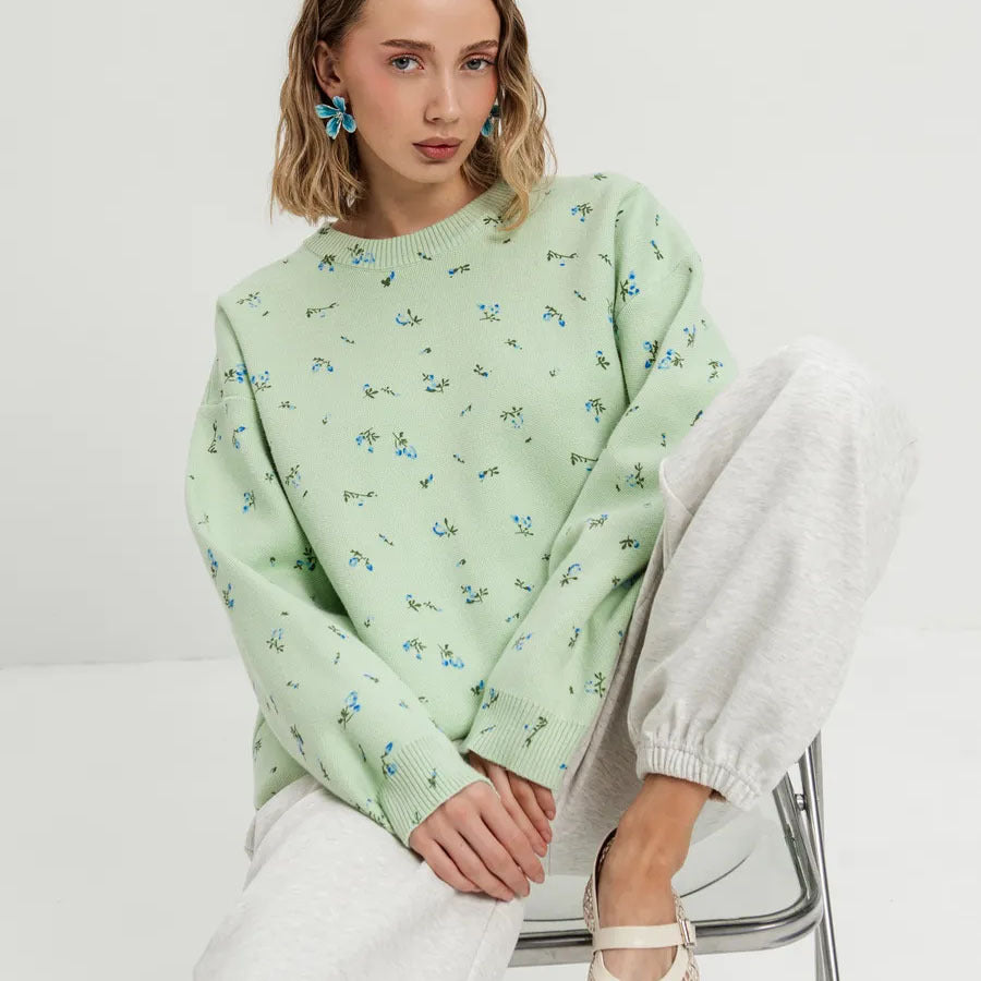 Damen kuscheliger Strickpullover mit floralem Muster Fudus
