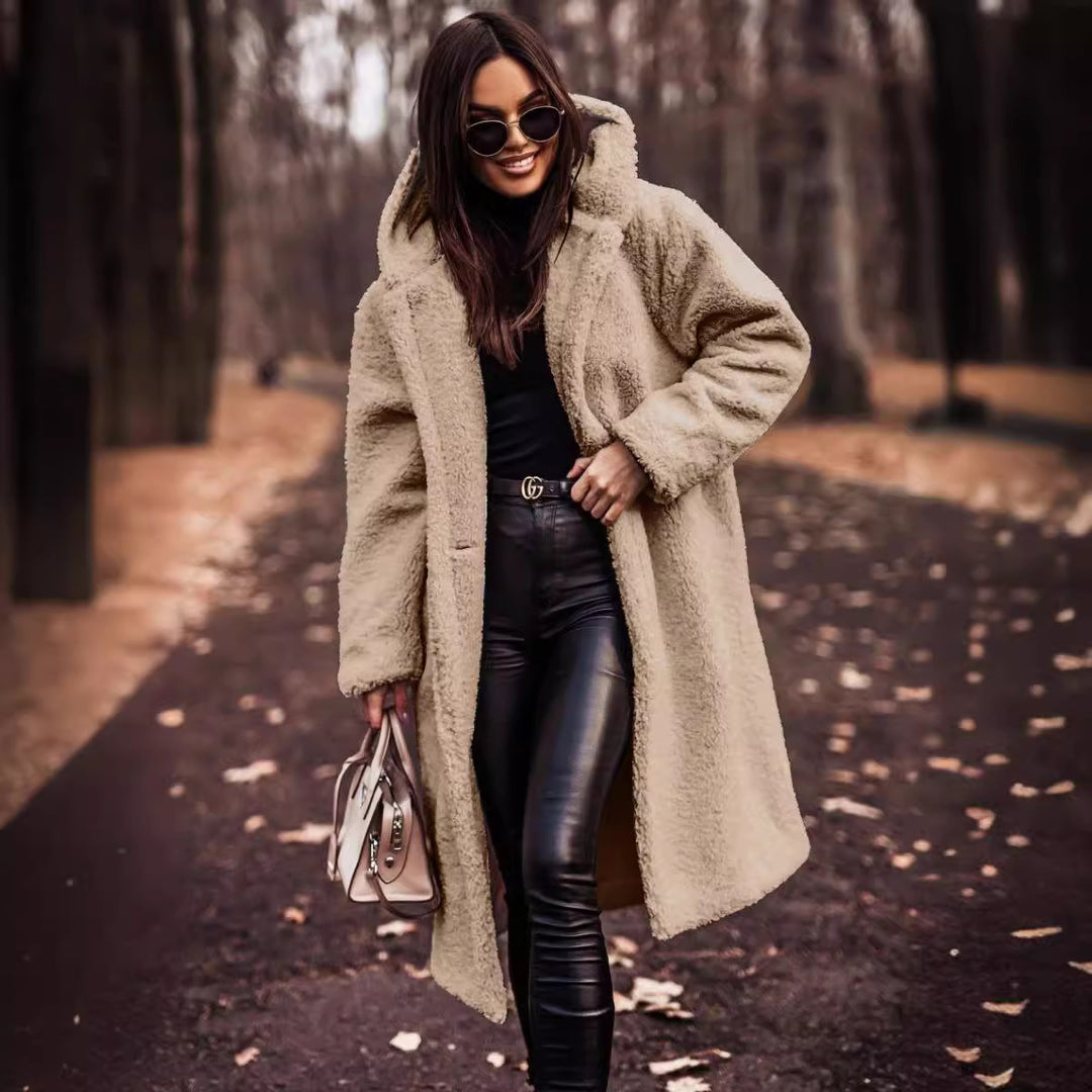 Damen kuscheliger Teddy-Mantel mit elegantem Revers und praktischen Taschen