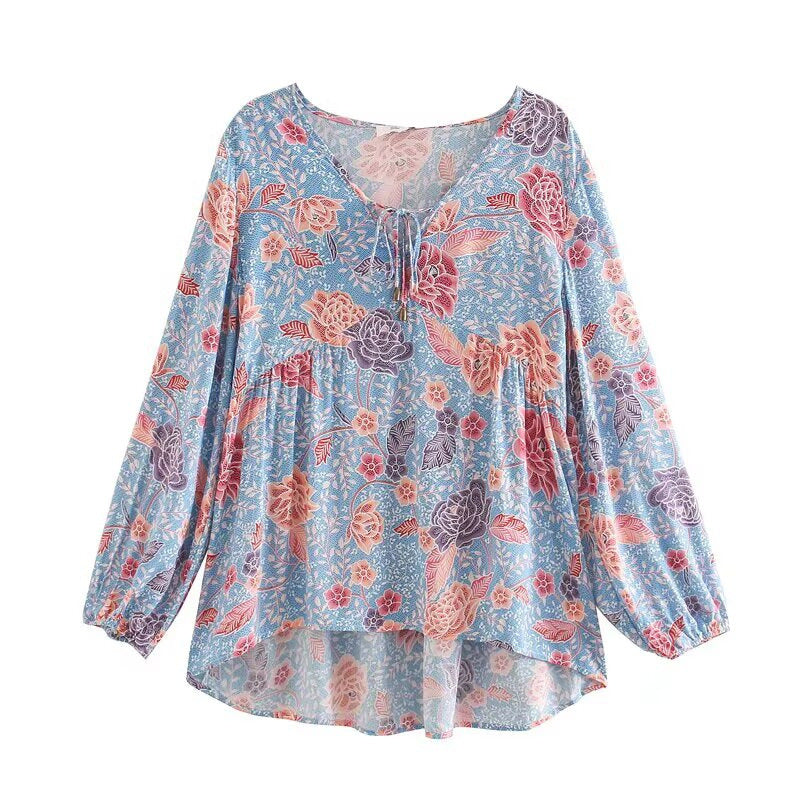 Damen Langarmbluse mit floralem Muster Fudus