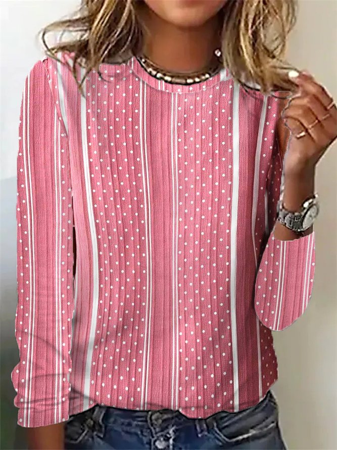 Damen Langarmbluse mit gestreiftem Punkte-Design Fudus