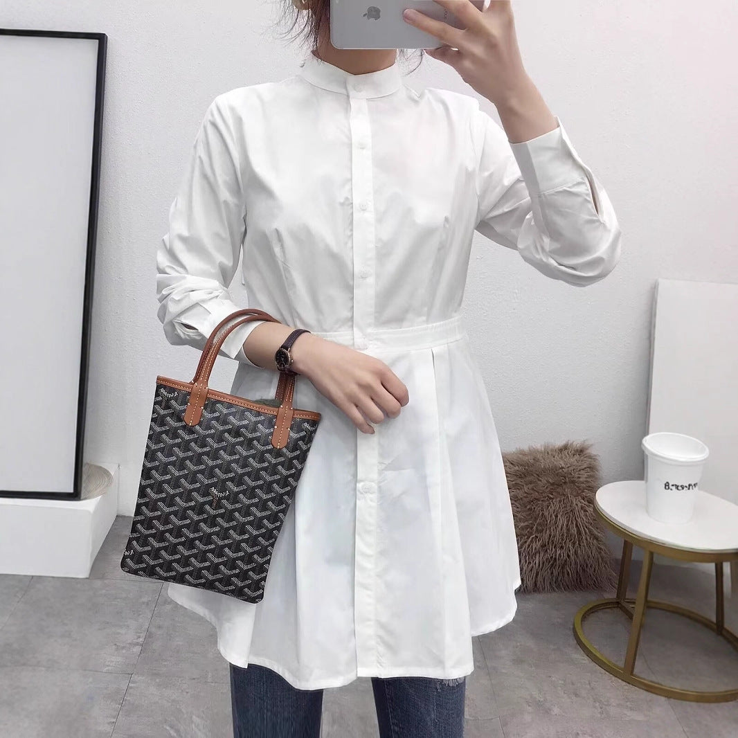 Damen Langarmbluse mit tailliertem Schnitt und knöpfbarem Stehkragen Fudus