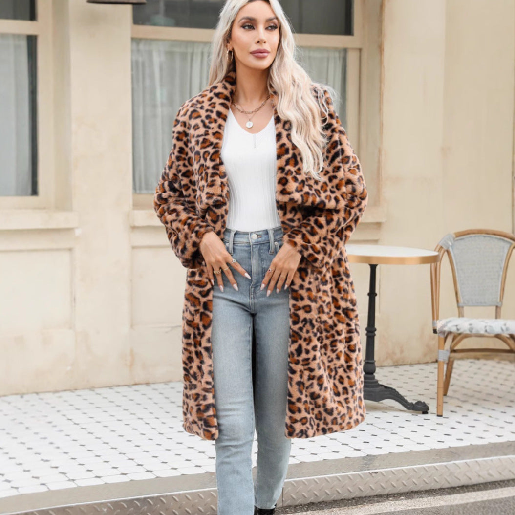 Damen Langärmeliger Leopardenmuster Plüschmantel Fudus
