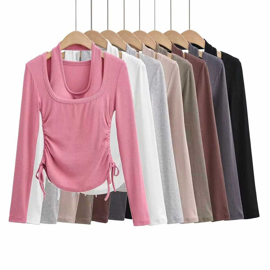 Damen langärmeliges Oberteil mit dekorativem Knoten Fudus