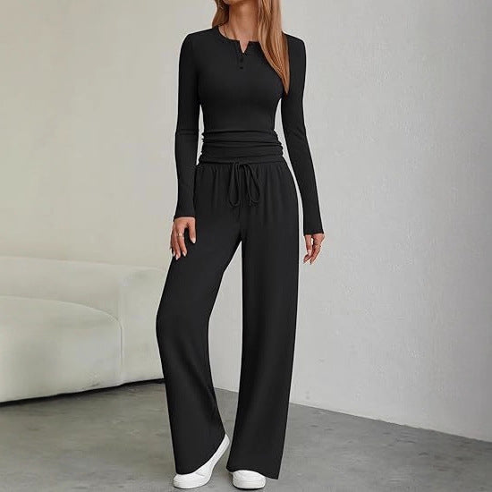Damen Langärmliges Lounge-Set mit verstellbarem Taillenzug Fudus